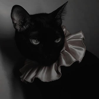 ㅤ➣ Siempre acompañado de un pequeño gato negro, Berenice, que acompañó a su madre desde su estancia en Hogwarts y del que se pregunta cómo es que sigue con vida.